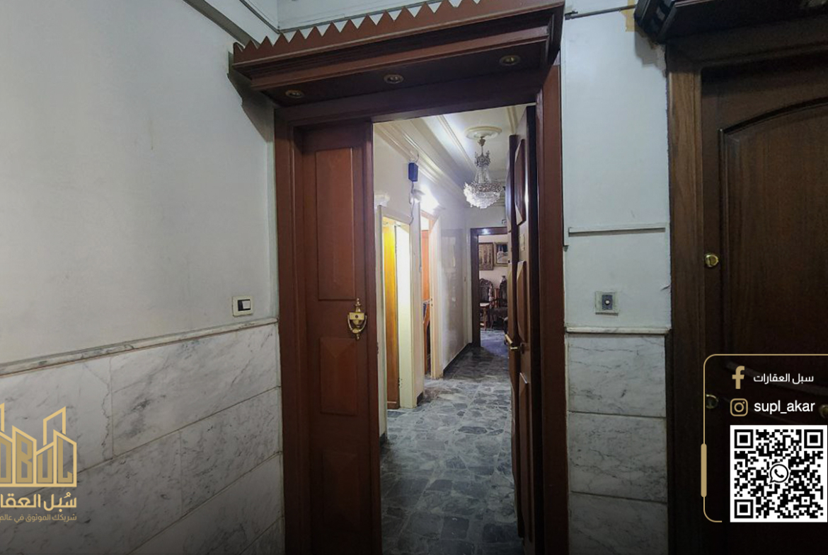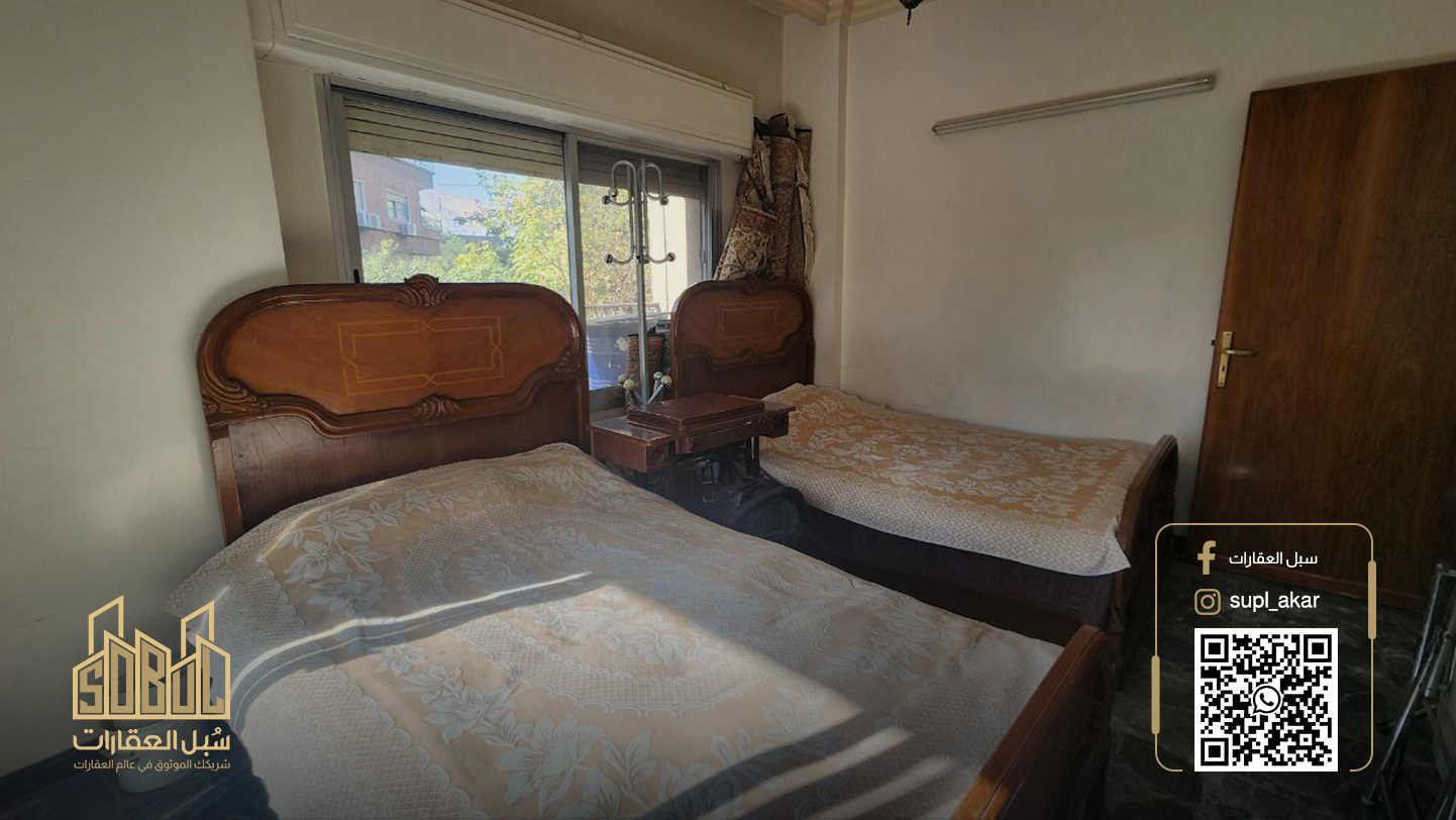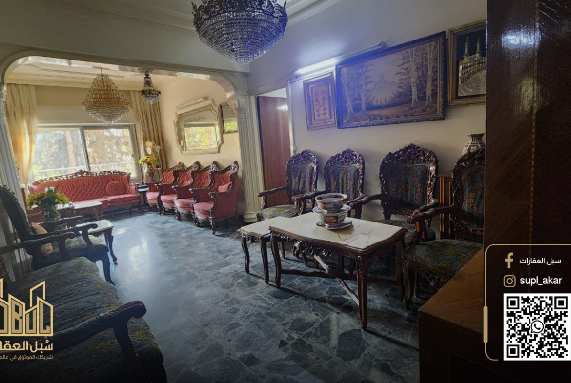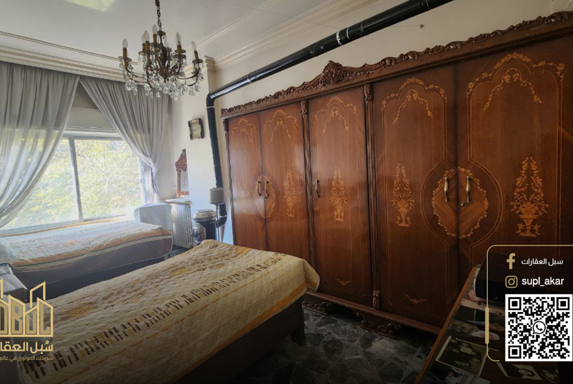 شقة في دمشق في منطقة العدوي مواجه مشفى الحياة – بمساحة 220م تتميز بمدخل واسع تتألف من 4 غرف وصالون + مطبخ كبير + 2 حمامات+3 تراس و طابو أخضر و تتميز بوجود موقف سيارات و حديقة بالإضافة الى طاقة شمسية للبناء وجميع المنازل +بئر ماء خاص بالبناء وكاميرات مراقبة للحماية وجود حصة في السطح والقبو ويتميز بوجود حارس للبناء وناطور وأيضاً صالة أفراح خاصة بالبناء بالإضافة الى وجود خزانات مازوت (2000لتر ) الشقة مخدمه من جميع النواحي تتميز ب اتجاه قبلي كامل .